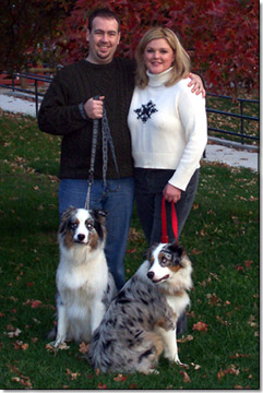 We live with our two Australian Shepherds (Buddy and Blue)